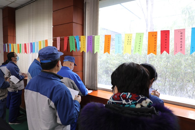 猜燈謎,與燈籠相伴而生。書于燈,映于燭,賦于形,藏于字。活動現場,一個個精美靈動、古色古香的燈籠呈現出濃濃的節日氣氛,一則則獨特的燈謎吸引了廣大黨員、職工踴躍競猜,二百余條燈謎將黨史、廉政知識融入傳統民俗之中,詼諧幽默、寓意深遠、耐人尋味。